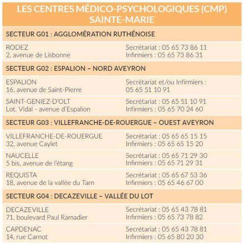 - 1 Centre médico-psychologique (CMP) à Rodez